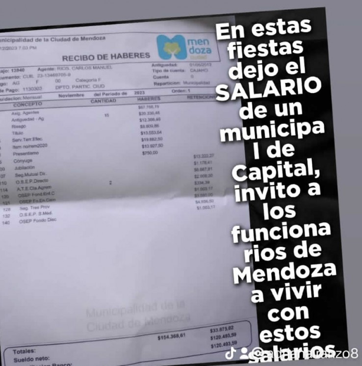La iniciativa se hizo pública mediante un posteo que incluía la imagen de un recibo de sueldo de un trabajador municipal, donde se destaca un salario bruto de 150 mil pesos.