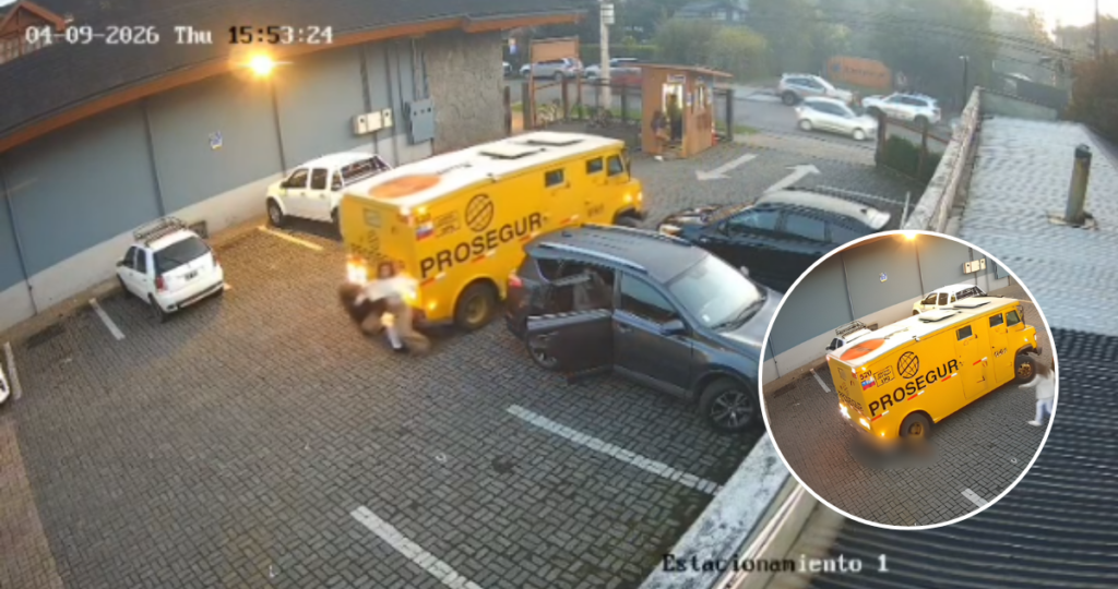 Un video de seguridad captó un momento escalofriante en el estacionamiento de una conocida tienda en Pucón, Chile. Un camión de valores de la empresa Prosegur entró marcha atrás al playón y, por un grave descuido del conductor que no miró por los espejos, atropelló a dos mujeres que caminaban por el lugar.