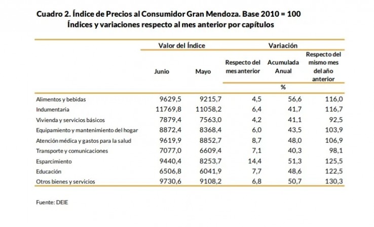 En tanto, en los últimos 12 meses, los mendocinos han sufrido una inflación del 112,1%.