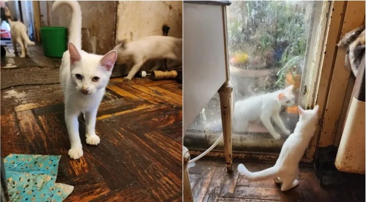Al ingresar al domicilio, los oficiales observaron que el lugar estaba lleno de basura acumulada y una importante gatos de diferentes edades y tamaños.