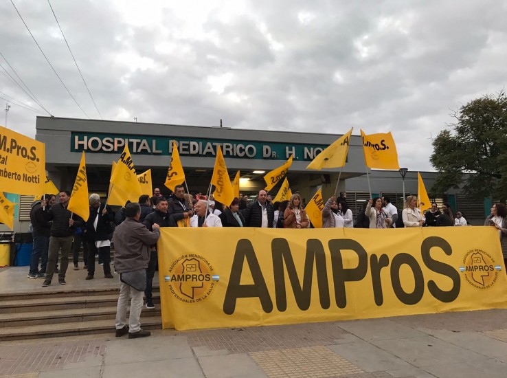 En medio de las fuertes denuncias hacia el gobierno de Rodolfo Suarez, este lunes los médicos agrupados en AMPROS realizaron una gran manifestación frente a las dependencias del Hospital Humberto Notti.