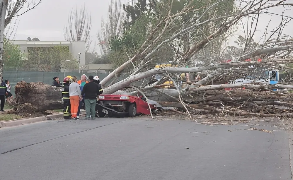 La furia del viento sur que azotó Mendoza este viernes dejó una víctima fatal y una tragedia que conmueve a toda la provincia. En un brutal accidente captado por cámaras de seguridad, una mujer murió aplastada por un árbol que se desplomó sobre su vehículo en Maipú.